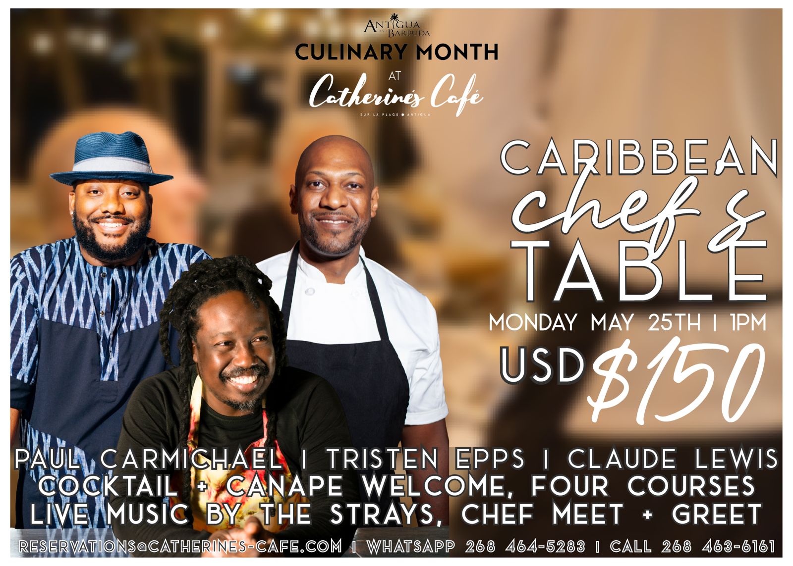 Rocks Group is celebrating Antigua & Barbuda Culinary Month & Restaurant Week with an exclusive afternoon at Catherine’s Café, on May 25th, featuring celebrity chefs Paul Carmichael, Tristen Epps, and Claude Lewis